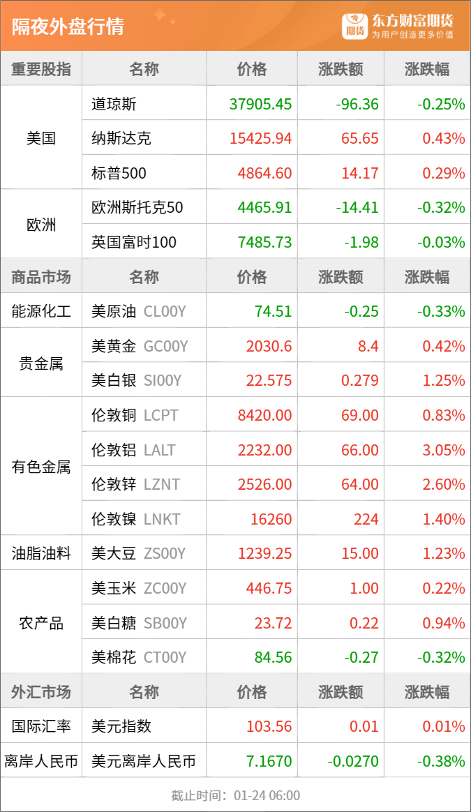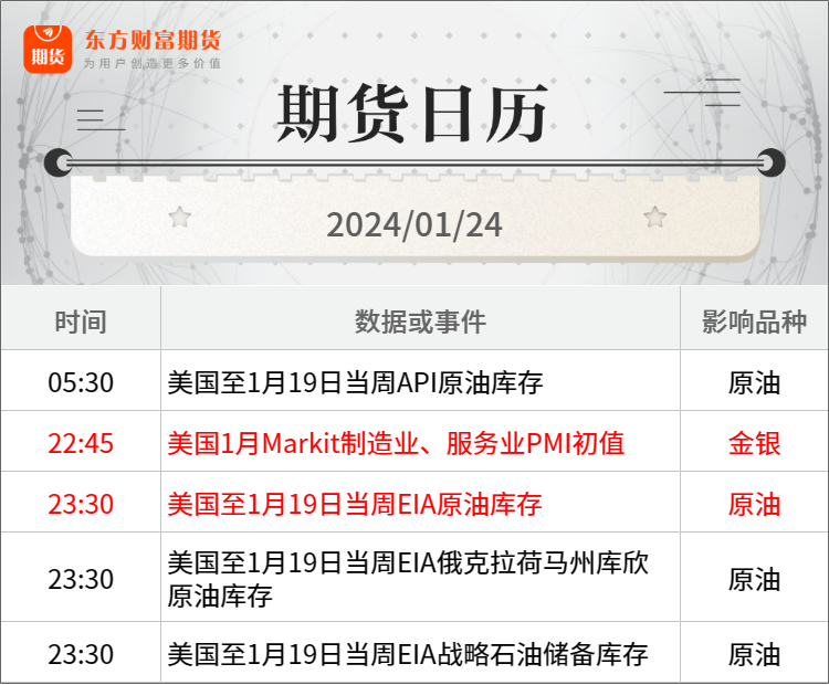 铜:1月22日,芝加哥商业交易所(CME)推出周二和周四到期的黄金、白银和铜的周度期权,并对CME此前推出的周一和周三到期期权形成补充。本次上市与去年12月CME发布的计划一致。(期货日报网)